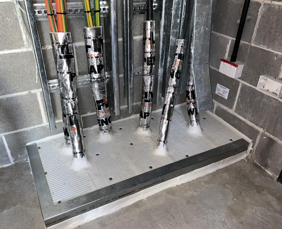 Provision of supply, installation, and certification services for electrical service penetrations, delivered in compliance with relevant AS standards and NCC requirements to ensure penetrations achieve the required Fire Resistance Levels (FRLs).