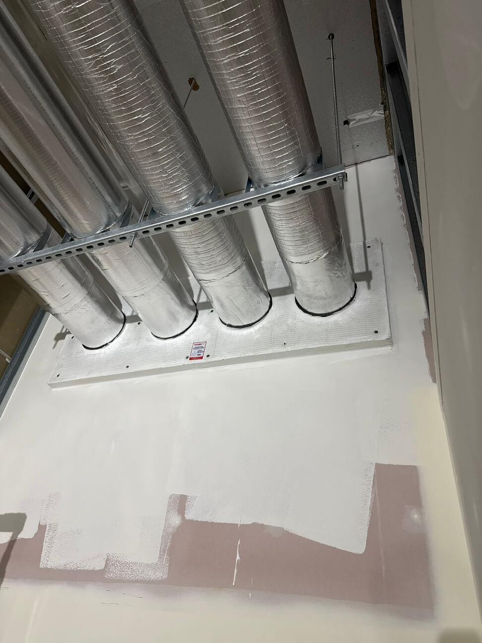 • Installed compliant fire protection systems for electrical and mechanical service penetrations in accordance with AS 1530.4 and AS 4072.1 to meet NCC performance requirements.