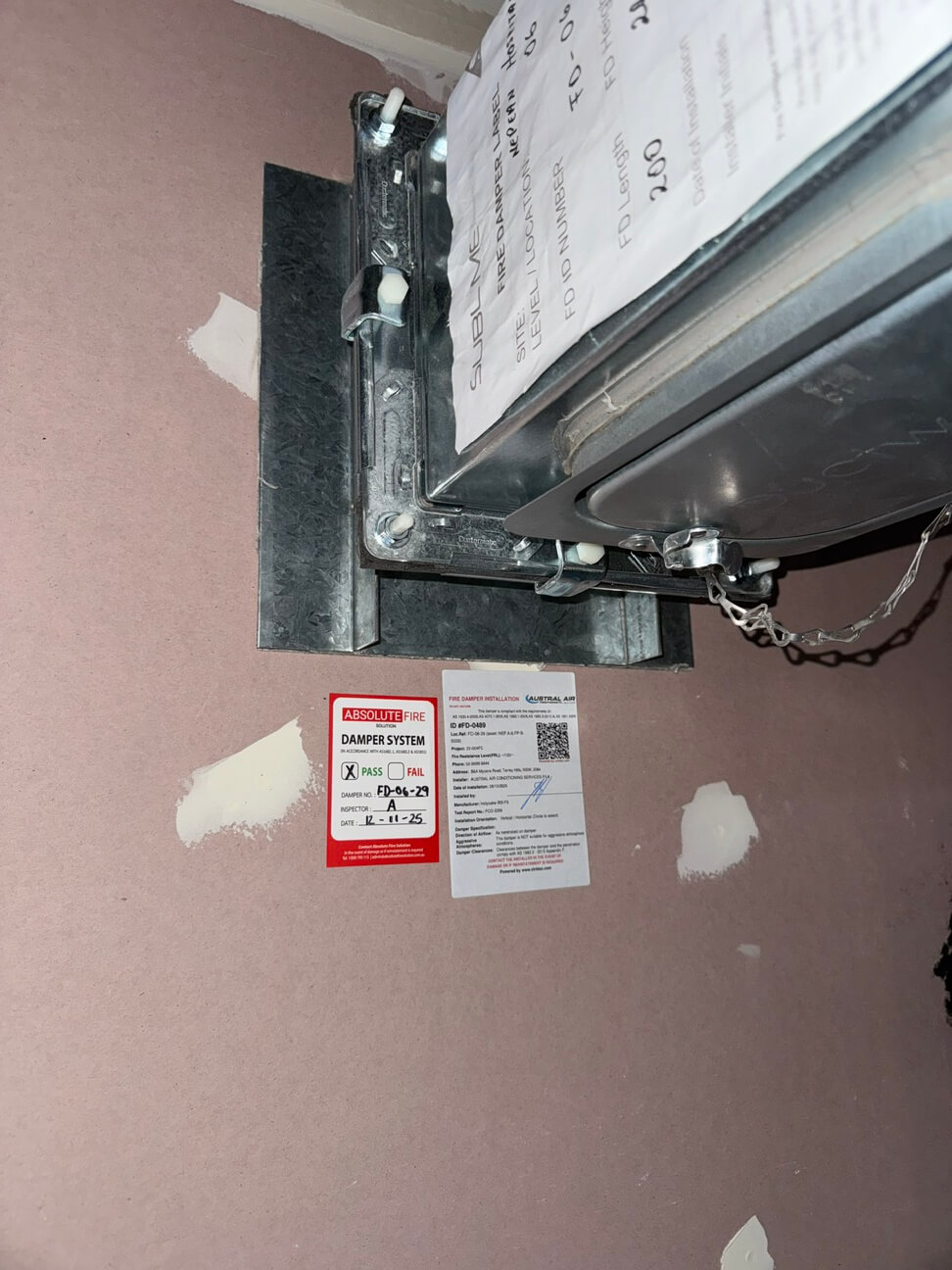 • Inspected fire and smoke dampers and fire seal in accordance with the relevant AS standards and NCC provisions, and issued a third-party independent Fire Damper and Fire Seal Inspection Certificate accompanied by a detailed inspection register and report.